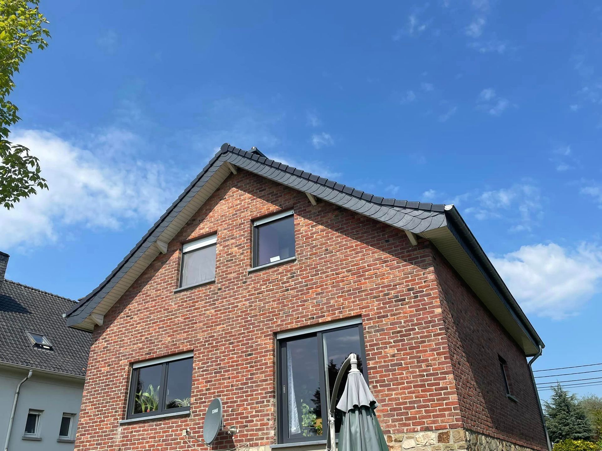 Hier wurde mit Aufdachdämmung energetisch saniert und als Eindeckung wurde von Monier die Ziegel Postel 20 gewählt. Es ist eine kleine Ziegel die allerdings sehr viel hermacht. Die Stirn- und Ortgangbretter wurden mit Schuppen Schiefer von Theis Böger bekleidet. Es war ein schönes Projekt welches uns viel Freude bereitet hat.